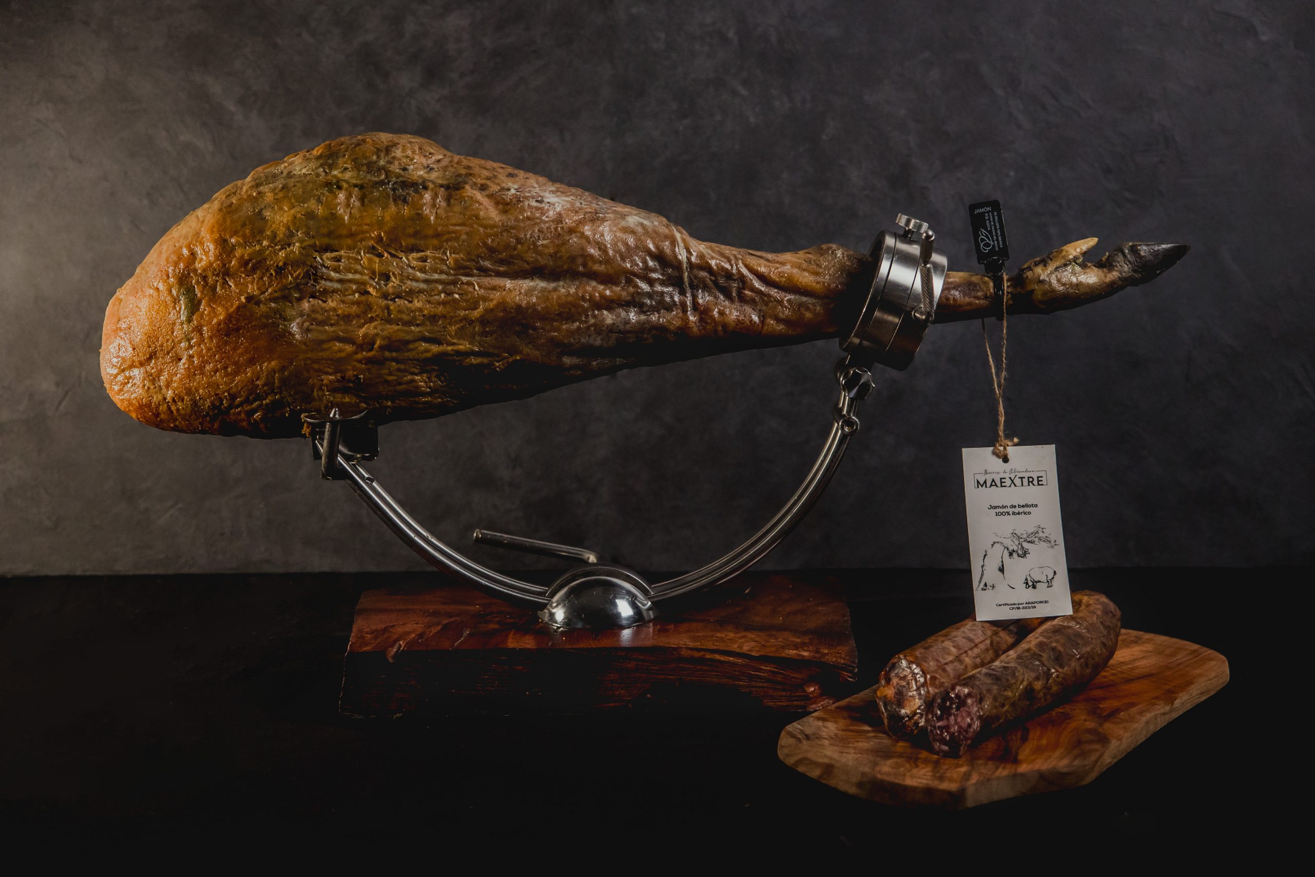 El Jamón de Bellota 100% Ibérico Maextre es un jamón nacido de las dehesas extremeñas. Los animales son criados con mucho cariño viviendo toda su vida en ganadería extensiva, nunca estabulados ni siquiera en las primeras etapas del crecimiento. Maextre cría el cerdo desde su nacimiento o desde lechón en la finca La Matilla.